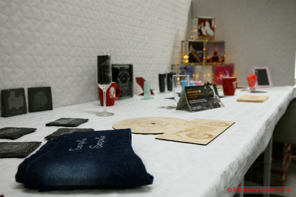 Vom Leistungsspektrum der Fullservice-Agentur konnten sich die rund 90 Besucher aus 60 Unternehmen in der Druckerei überzeugen, die Tampondruck-, Siebdruck- und Lasergravurmaschinen beherbergt und in der von gebrandetem Jeansstoff über personalisierte Tassen, Gläser und Bilderrahmen bis hin zu individualisierten Schieferplatten zahlreiche Veredelungsbeispiele präsentiert wurden. Jeder Gast durfte ein Trinkglas mit nach Hause nehmen, das Burg Services-Mitarbeiter vor Ort per Lasergravur mit dem jeweiligen Wunschnamen personalisierten. Burg Services-Geschäftsführer Marco Römisch und sein Vertriebsteam begleiteten die Kunden zudem von Stand zu Stand und sorgten gemeinsam mit den Lieferantenpartnern für eine individuell auf das werbende Unternehmen zugeschnittene Beratung.