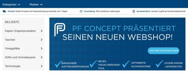 PF Concept, NL-Roelofarendsveen, hat einen neuen Webshop online gestellt. Der modernisierte Online-Auftritt zeichnet sich durch einfache Auftragserfassung und transparente Preiskalkulation aus. Darüber hinaus verfügt das Portal über ein neues Visualisierungstool und eine verbesserte Suchfunktion.
