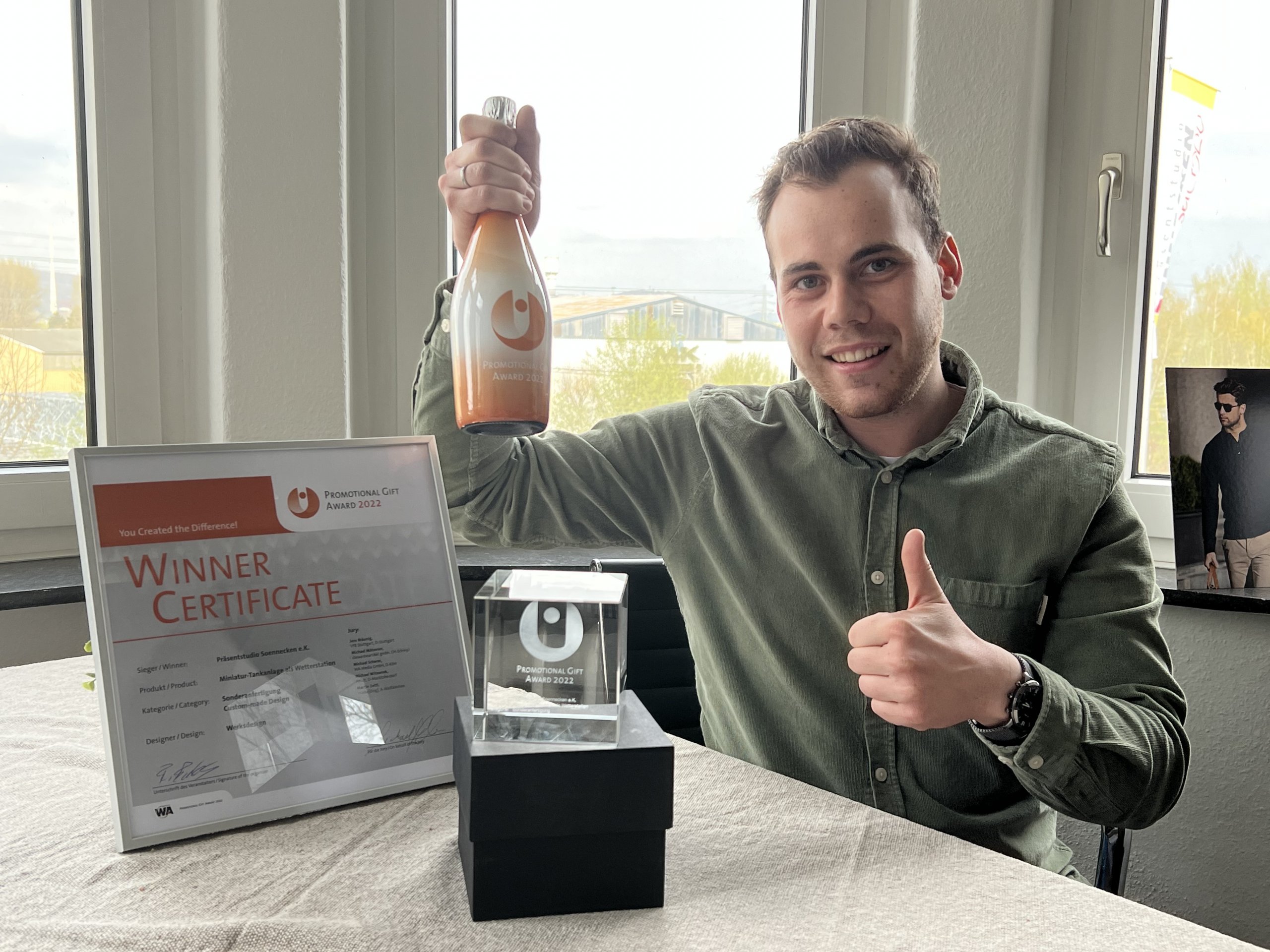 Der Promotional Gift Award 2022 hat die Kreativität und Innovationskraft der Werbeartikelbranche erneut eindrucksvoll unter Beweis gestellt und die Jury mit spannenden und originellen Produkten und Kampagnen begeistert. Wie schon im vergangenen Jahr hat Veranstalter WA Media wieder wohlverdiente Siegerpakete mit Prosecco und Trophäen geschnürt und an die Gewinner verschickt, um sie gebührend hochleben zu lassen. Die eingesendeten Bilder zeigen: Die Freude über eine Auszeichnung mit dem prestigeträchtigen Award bei den Teilnehmern ist groß.