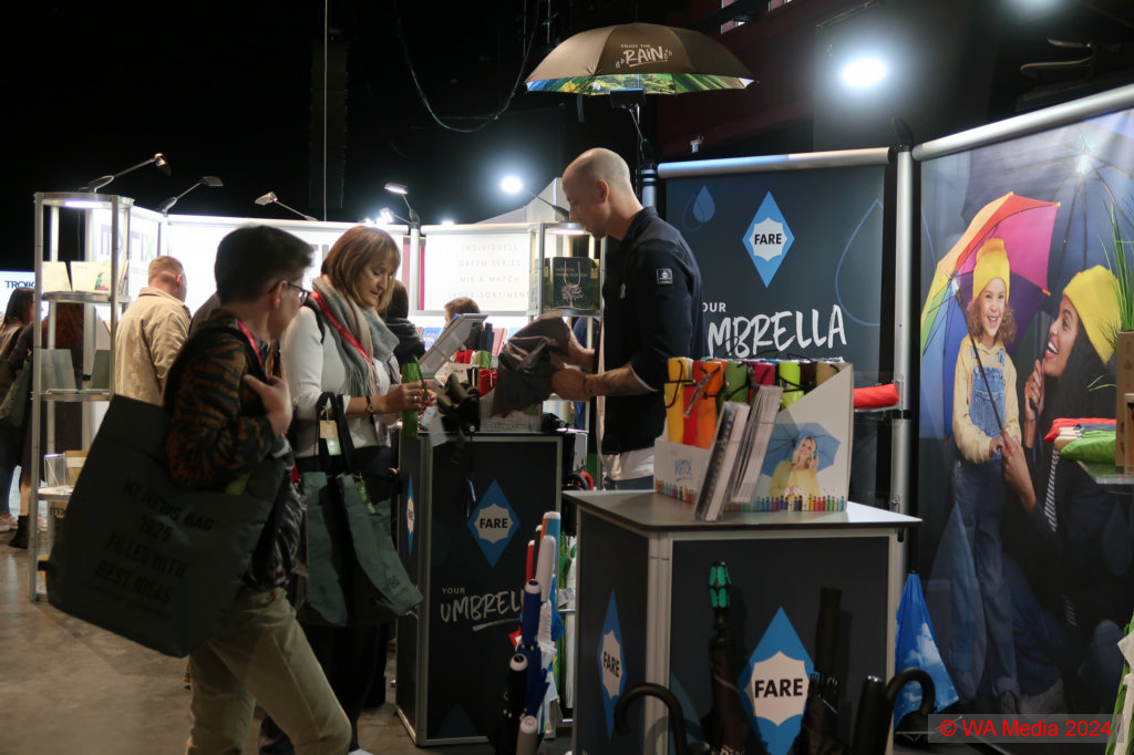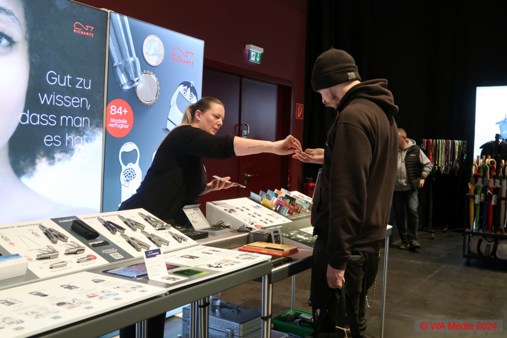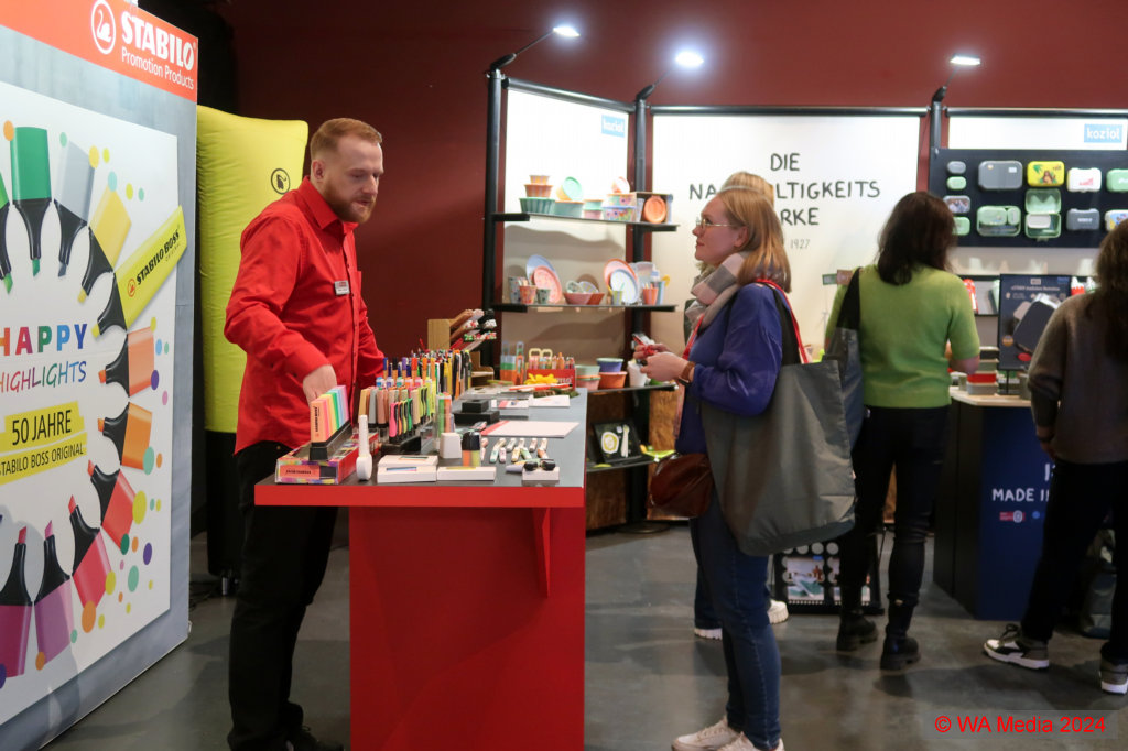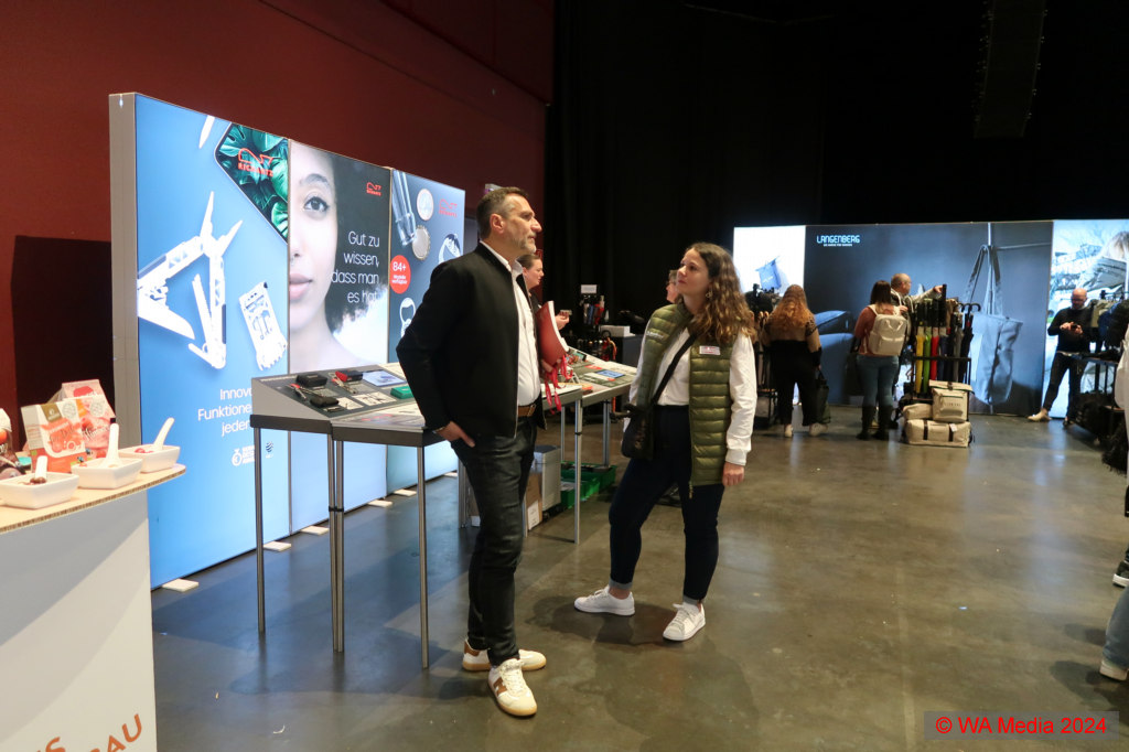 Zudem wurde, wie in den Vorjahren, der „Karlsruher Werbemittelstar“ gesucht. Um den Sieger zu ermitteln, veranstaltete das Hauptfleisch-Team einen Wettbewerb, bei dem jeder Aussteller seinen Werbeartikel-Favoriten aus seinem Sortiment am Stand ins Rennen schicken konnte. Die Besuchenden hatten die Möglichkeit, mittels Stimmzettel ihren Favoriten zu wählen. Gleichzeitig nahmen sie dabei automatisch an einem Gewinnspiel teil. In diesem Jahr setzte sich Landgarten an die Spitze und belegte mit seinem Bio Knabber Mix Original den ersten Platz. Den zweiten Platz konnte der Roll-up-Rucksack Simple Premium von WIL Langenberg ergattern, und der dritte Platz ging an die Thermotasse myNizza Ceramic von Reflects.