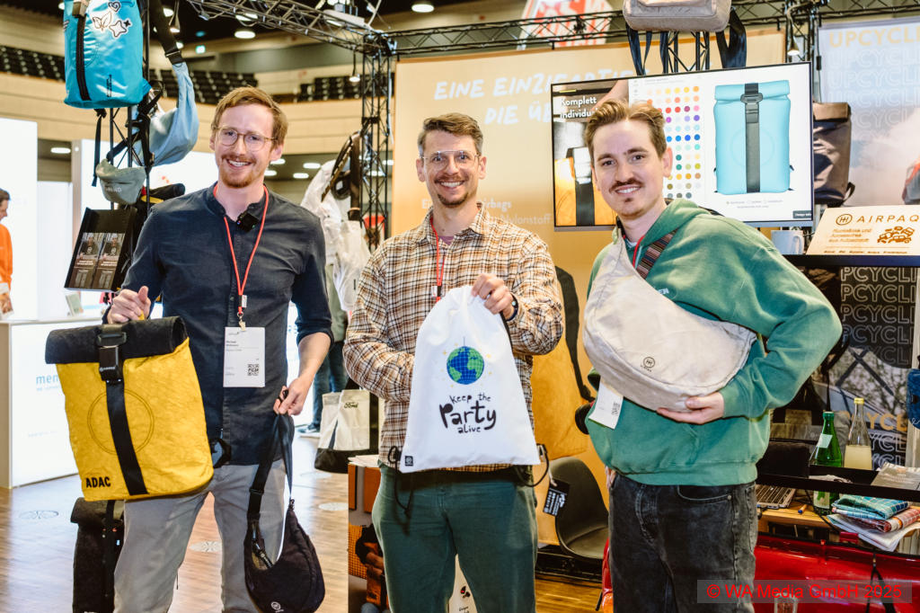 Ein großes Trendthema sind Re- und Upcyclingprodukte, die an vielen Ständen zu finden waren: von Stiften aus Zeitungspapier oder ausrangierter Teamwear über Flaschenöffner aus alten Messeteppichen und Trinkbecher aus Kaffeesatz bis hin zu Kerzenleuchtern aus ehemaligen Glasflaschen.