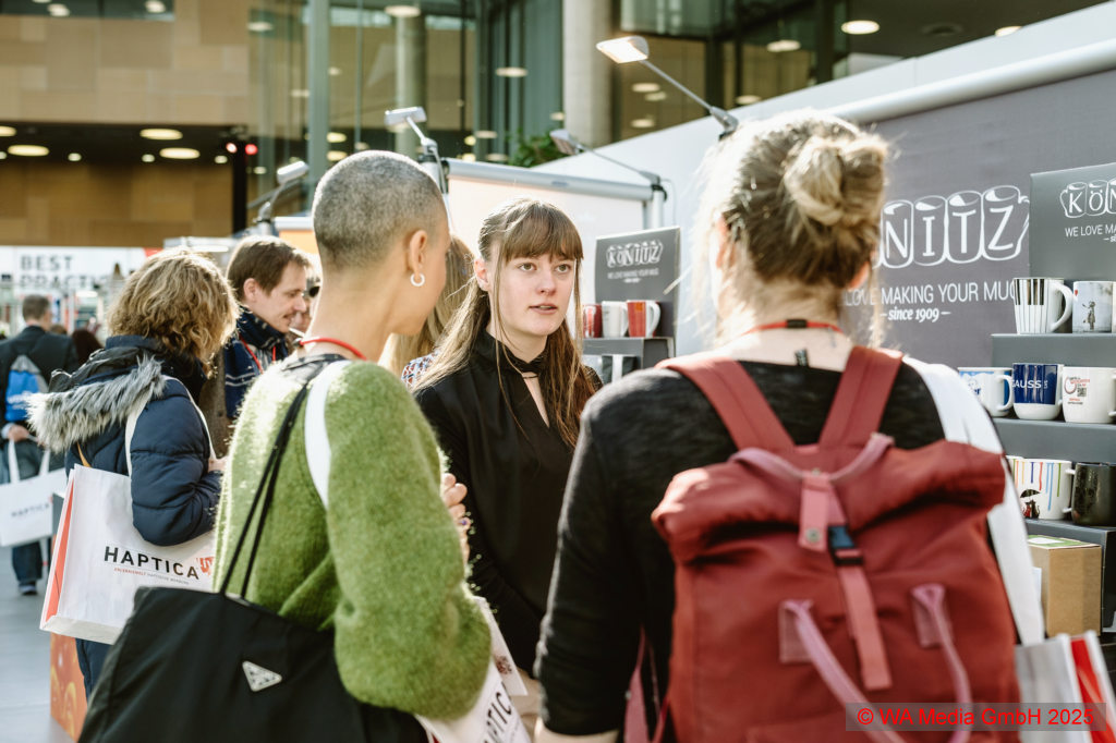 Produkte wie die niedlichen Evergreenies lockten die Besucher scharenweise an. Überhaupt konnten sich die Aussteller über mangelndes Interesse nicht beschweren: Insgesamt kamen 1.134 Besucher zur HAPTICA® live ‘25 und sorgten v.a. am Vormittag und frühen Nachmittag für großen Andrang an den Ständen, ließen sich Produkthighlights zeigen, stellten aber auch konkrete Anfragen und zeitnahe Order in Aussicht.