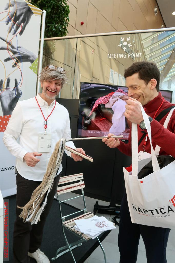 Wir sind sehr zufrieden. Gerade am Vormittag war total viel zu tun. Ich bin kaum dazu gekommen, Notizen zu machen, weil wir dauernd im Gespräch waren. Die Leute waren von unserem Tangle, ein Produkt, das kaum einer kannte, angefixt. Wir waren mit fünf Leuten fast unterbesetzt. Die Resonanz war heute extrem positiv. Die HAPTICA® live ist jedes Jahr eine tolle Veranstaltung. Das Wording der Veranstaltung – „Werbung in ECHT“ – passt perfekt. Der Haptikeffekt wird total unterschätzt. Aber das ist unser Wahrheitssinn. Was die Leute anfassen können, ist für sie Realität, das erleben sie als richtig. Wenn wir das unseren Kunden erklären und sie das verstehen, kommen wir mit haptischer Werbung sofort auf ein ganz anderes Niveau.