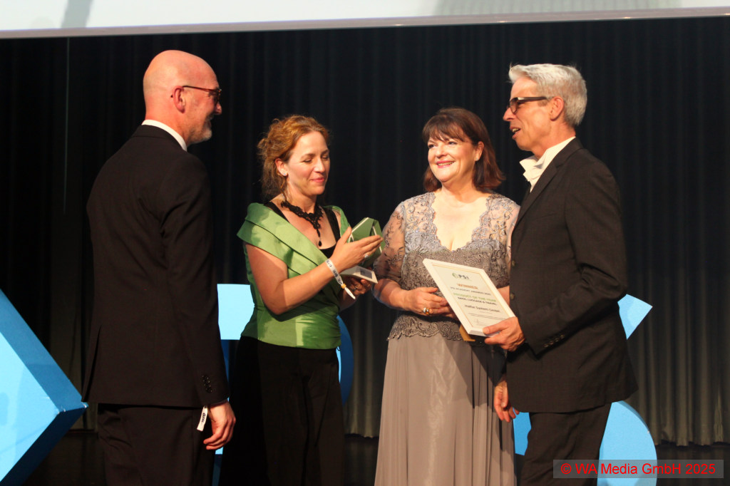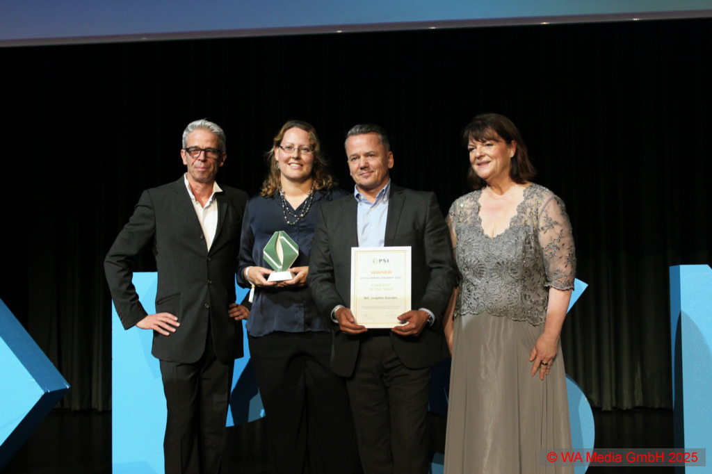 BIC Graphic gewann in der Kategorie Company of the Year. V.l. Jurymitglied Nils Bader (Green Future Club), Elke Röhm und Klaus Kuso (BIC) sowie PSI-Chefin Petra Lassahn.