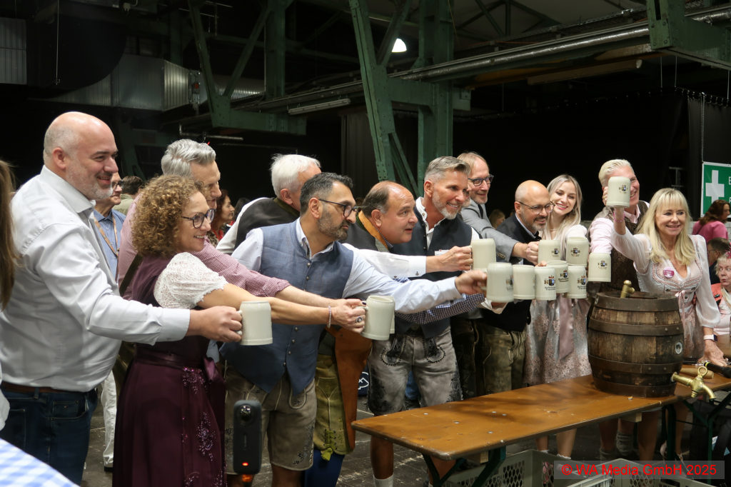 Um kurz nach 12 hieß es dann „O’zapft is“ – traditionell stach auch in diesem Jahr Thomas Gottschall das Fass an und erklärte damit, umrahmt von seinen Mitveranstaltern, das Büffet für eröffnet. Passend zum zünftigen Auftritt konnten sich hungrige Besucher mit Schnitzel, Käsespätzle oder Leberkäse stärken und mit einem Weißbier auf gesammelte Ideen oder bereits abgeschlossene Geschäfte anstoßen. Die Biertische füllten sich schnell und auch hier und an den Stehtischen entstanden bei Speis und Trank schnell zahlreiche Gespräche.
