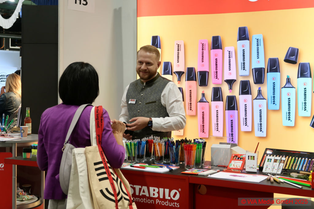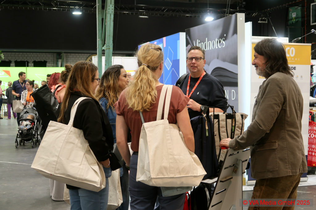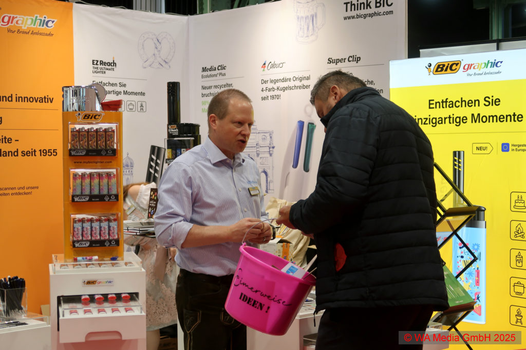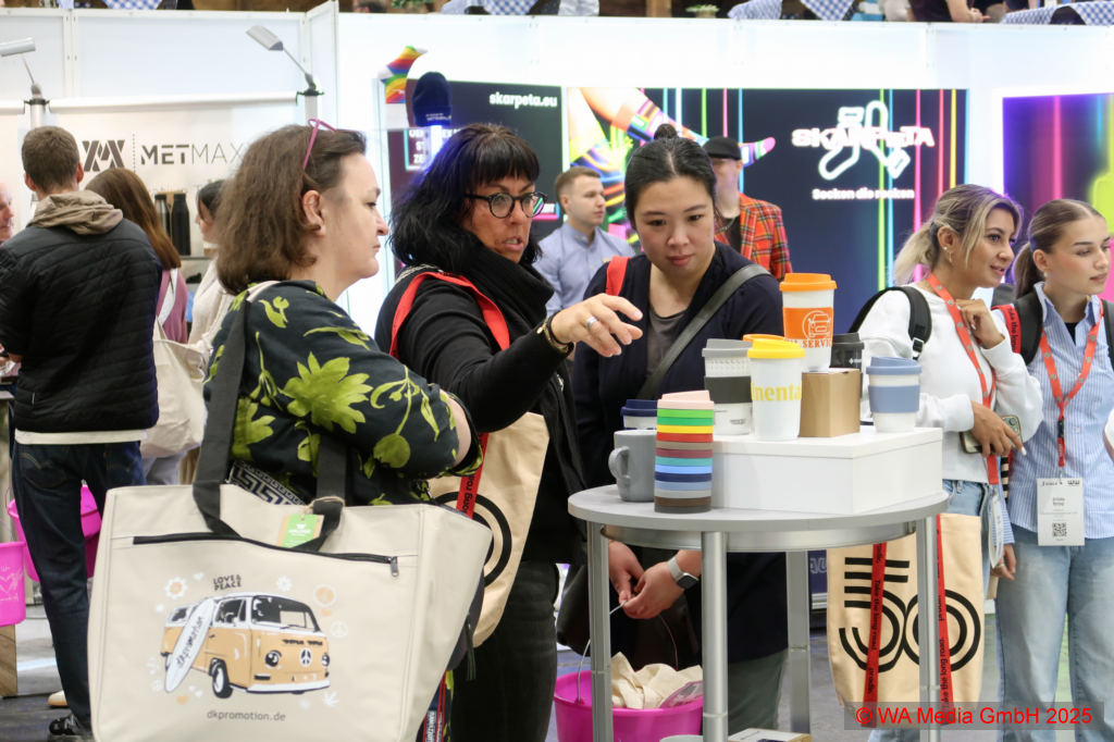 Schnell füllten sich die Gänge der Halle und Aussteller und Besucher begannen Gespräche über Neuheiten, Bestseller und die Vorteile der unterschiedlichen Werbeartikel. „Wir hatten gegen Mittag schon über 600 Besucher hier, das ist eine gute Quote“, berichtet Thomas Gottschall, Geschäftsführer bei Eidex. Im Laufe des Tages fanden sich insgesamt 853 Besucher (2024: 856) auf der Messe ein und hatten ausreichend Gelegenheit, sich an den Ständen der 115 Aussteller inspirieren zu lassen und Informationen einzuholen.