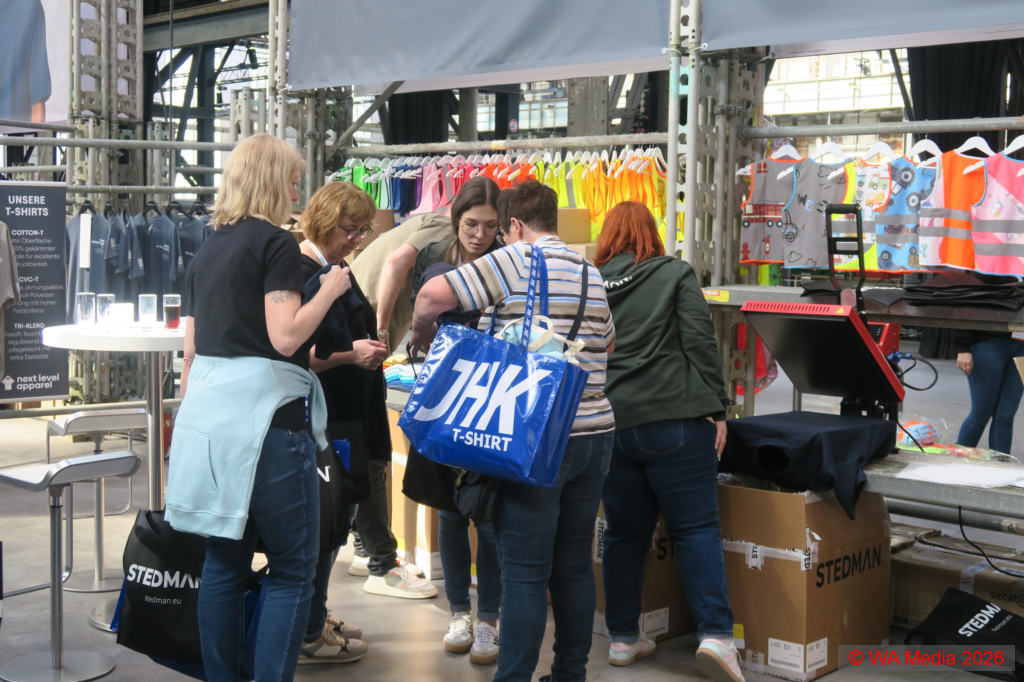 Über 100 Aussteller, darunter Händler, Lieferanten und Technikpartner präsentierten ihre Besteller und Neuheiten und nutzten die Gelegenheit, ihre Kollektionen im direkten Austausch mit dem Fachhandel vorzustellen. Mit rund 600 Besuchern pro Tag, so die Veranstalter, stand die Jahrhunderthalle für drei Tage ganz im Zeichen der Textilveredelung und des persönlichen Austauschs.